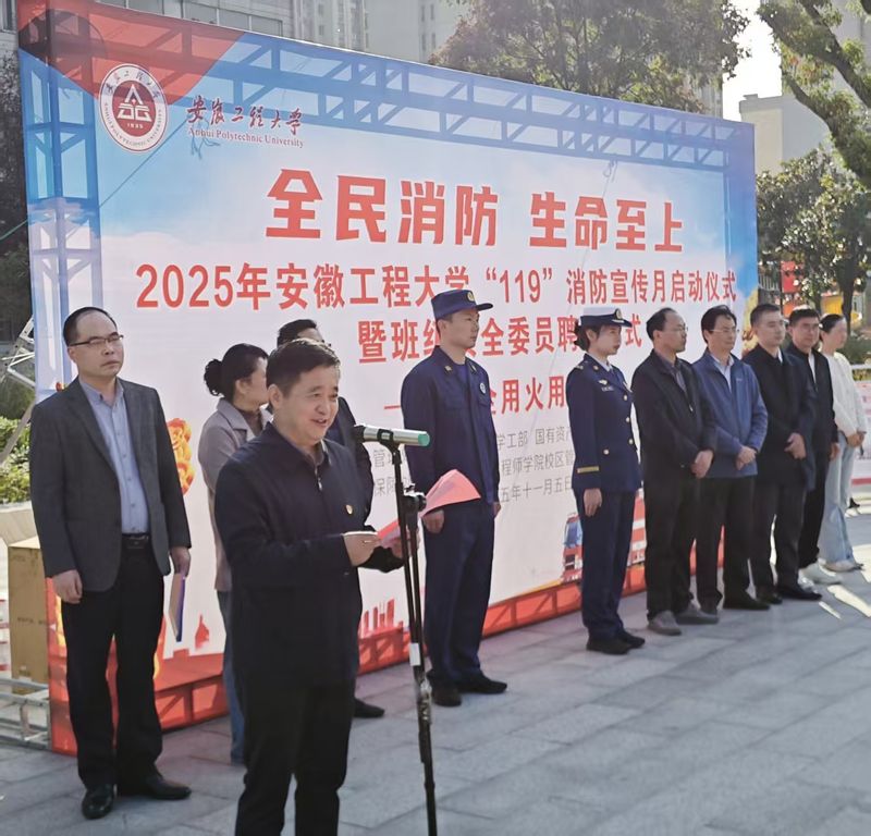 启动仪式明责任,安全队伍再充实。此次活动以消防宣传月启动仪式暨班级安全委员聘任仪式拉开序幕。校党委常委、副校长张开炳出席并致辞,鸠江消防救援大队、辖区警务站及校内各单位代表与2025级班级安全委员参加。仪式上公布了消防宣传月活动方案,聘任192名同学为班级安全委员,进一步健全了校园安全防护网络。